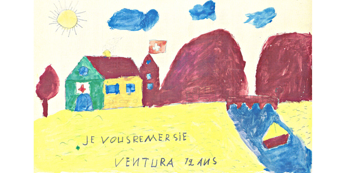 Mais nous avons voulu qu’il en soit ainsi pour leur rendre hommage. Ils témoignent à leur façon, avec candeur, des rêves et les projets de gamins auxquels la guerre et les persécutions ont volé leur jeunesse. Ce sont de somptueux bouquets de fleurs aux couleurs éclatantes, une rivière coulant aux pieds d’un village paisible, un voilier avançant sur mer agitée malgré ses voiles rapiécées, des couples d’oiseaux qui semblent se chuchoter des mots tendres, des ponts jetés au-dessus des fleuves, des cheminées qui fument, un soleil éclatant dans un ciel sans nuages, etc... L’imagination enfantine semble inépuisable lorsqu’il s’agit de suggérer une vie meilleure.